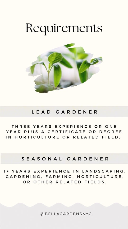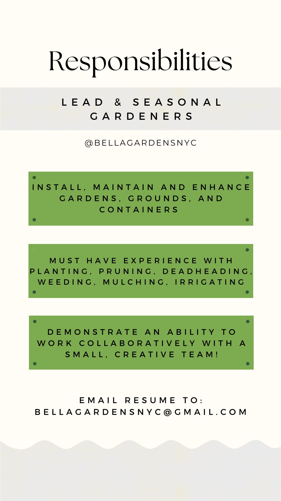 Email resume, cover letter, and portfolio to bellagardensnyc@gmail.com